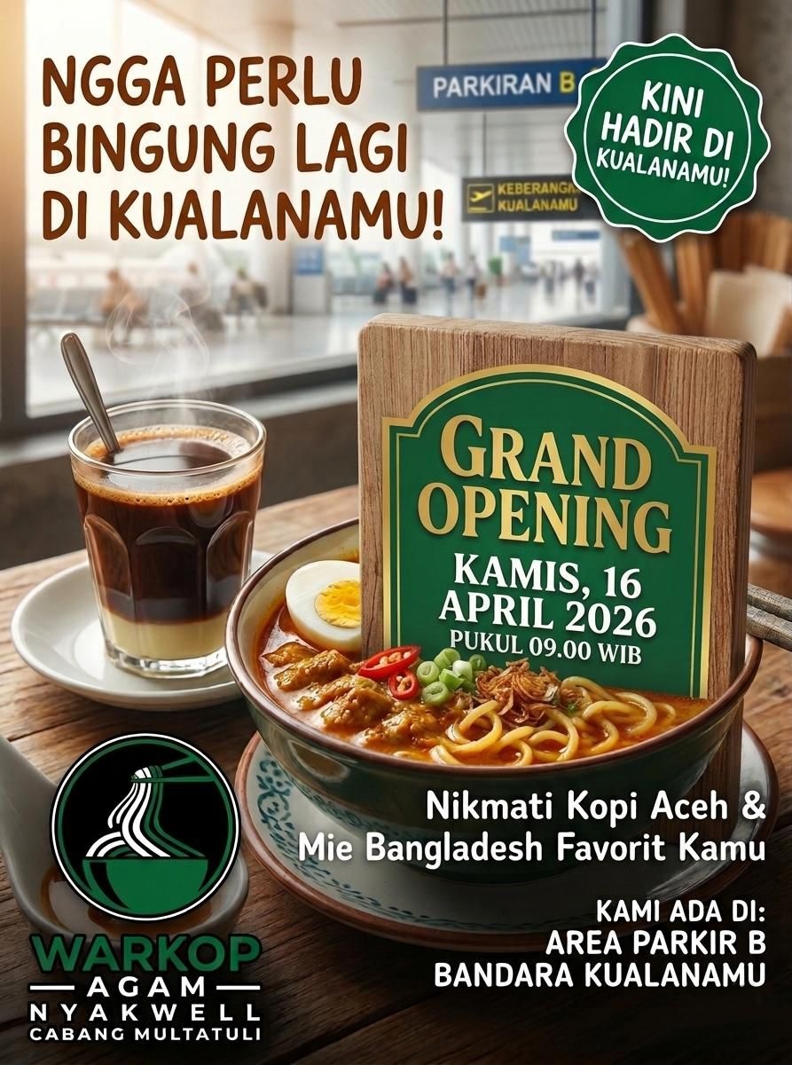 Nikmati hangatnya kopi Aceh dan lezatnya mie Bangladesh serta berbagai menu lainnya.